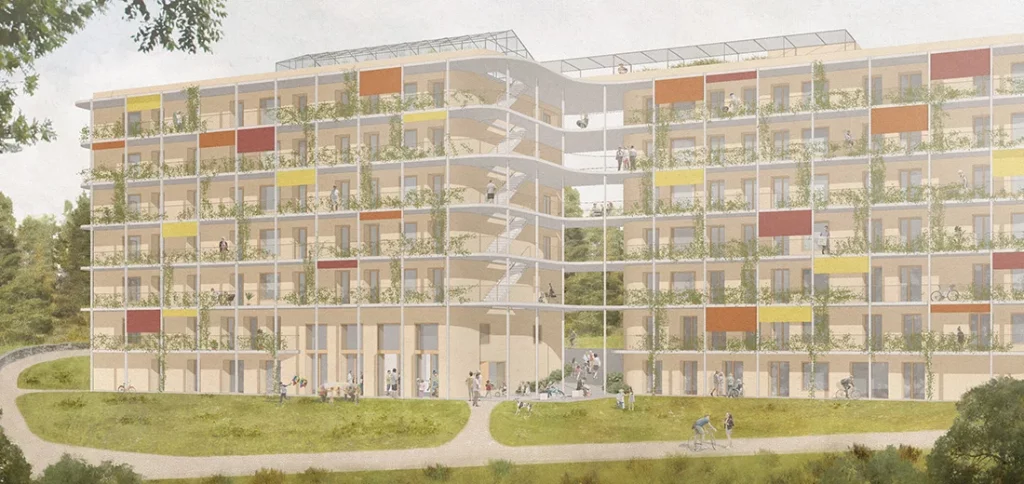 Amos architectes, avec les coopératives Equilibre et ChatPin, sont les lauréats de l’appel à candidature pour un DDP relatif à une parcelle à Pinchat, qui permettra de construire environ 50 logements visant une grande qualité du vivre ensemble et une approche environnementale et énergétique innovantes.