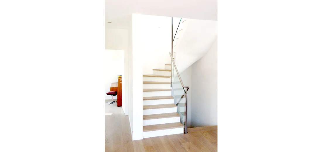 Les volumes sont composés de formes simples et permettent un aménagement optimal. Les espaces de vie sont orientés au sud et profitent des très bonnes conditions d’ensoleillement du terrain. Les chambres s’ouvrent généreusement vers un espace calme et végétal.