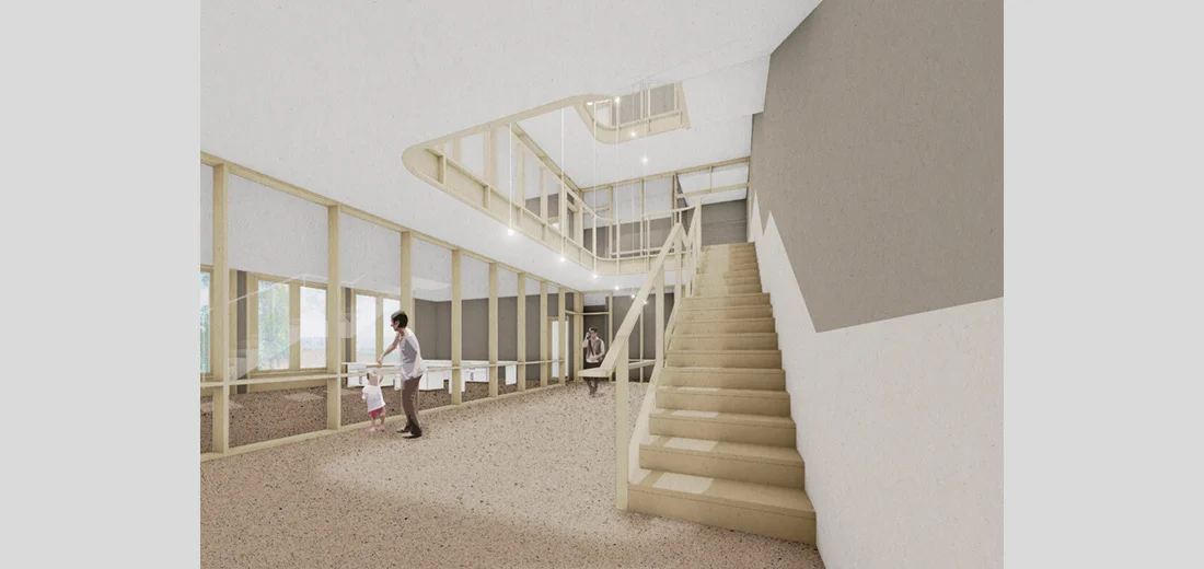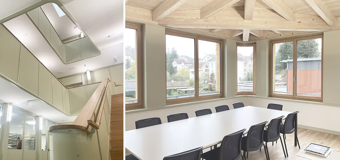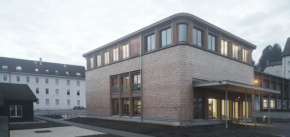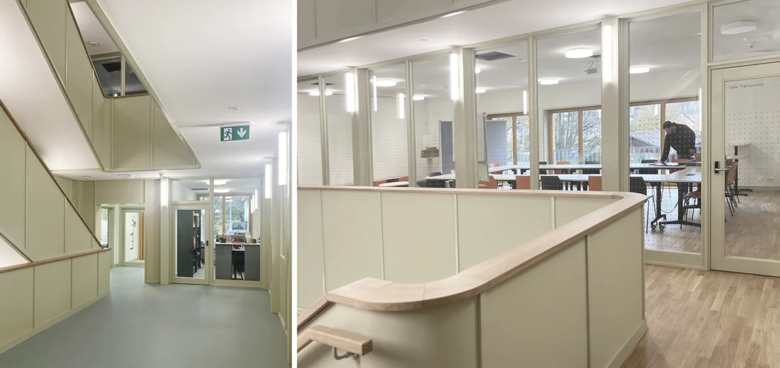Le Centre de Recherche et Conservation a été construit à la suite d’un concours d’architecture pour assurer plusieurs fonctions de stockage, analyse et valorisation des collections d’archéologie et paléontologie du Canton du Jura. Le transfert de ces activités dans le nouveau bâtiment permet de redonner à la Villa Beucler, avec laquelle le bâtiment forme un ensemble, sa fonction de musée. Le bâtiment est composé d’un sous-sol en béton, et de 3 étages hors sol, entièrement construits en bois. La façade en bardeaux manifeste en façade la composition structurelle interne. La distribution est organisée autour d’un patio interne, éclairé par un lanterneau. Les finitions internes donnent un sens de calme, par une composition harmonieuse du bois, du verre et de la couleur.