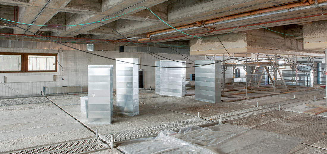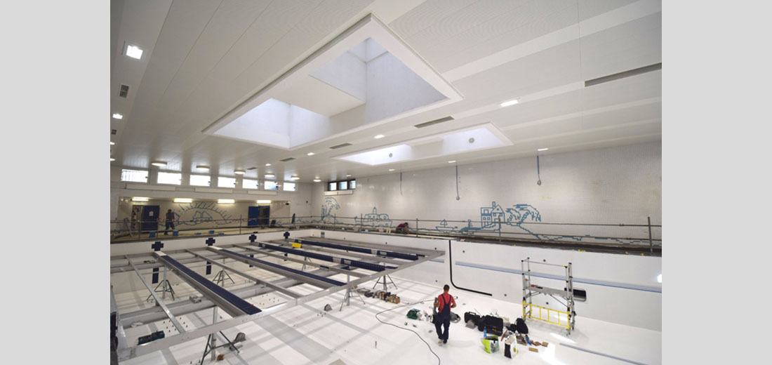 Le mandat est le résultat d’un appel d’offre organisé par la Ville de Genève. Le fond mobile en béton armé, activé par des vérins à huile, n’est plus en condition d’assurer un bon fonctionnement, et doit être remplacé par un système plus moderne, qui fonctionne sur un principe totalement différent exploitant le principe d’Archimède. Le chantier a commencé par une phase conséquente de désamiantage. Le programme des travaux inclut aussi la création de nouveaux vestiaires pour les moniteurs, le remplacement de plusieurs éléments techniques et de tous les faux-plafonds.