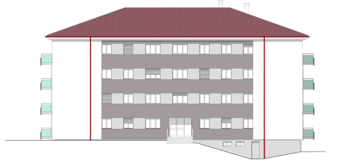 Pour cette intervention entièrement supervisée par l’équipe de projet, le choix a été fait d’améliorer l’enveloppe thermique tout en conservant les principales caractéristiques esthétiques de la composition architecturale d’origine. C’est par le choix des matériaux contemporain et des teintes que le bâtiment est encré dans le présent.